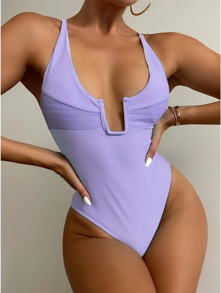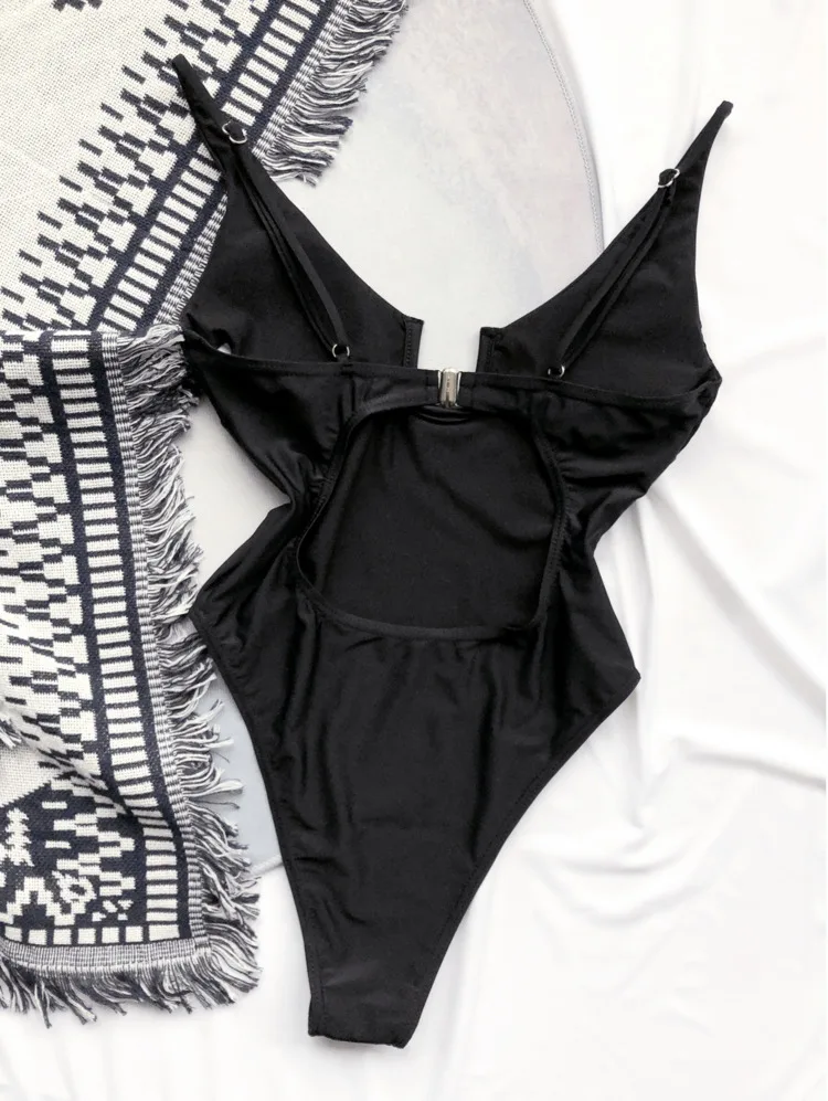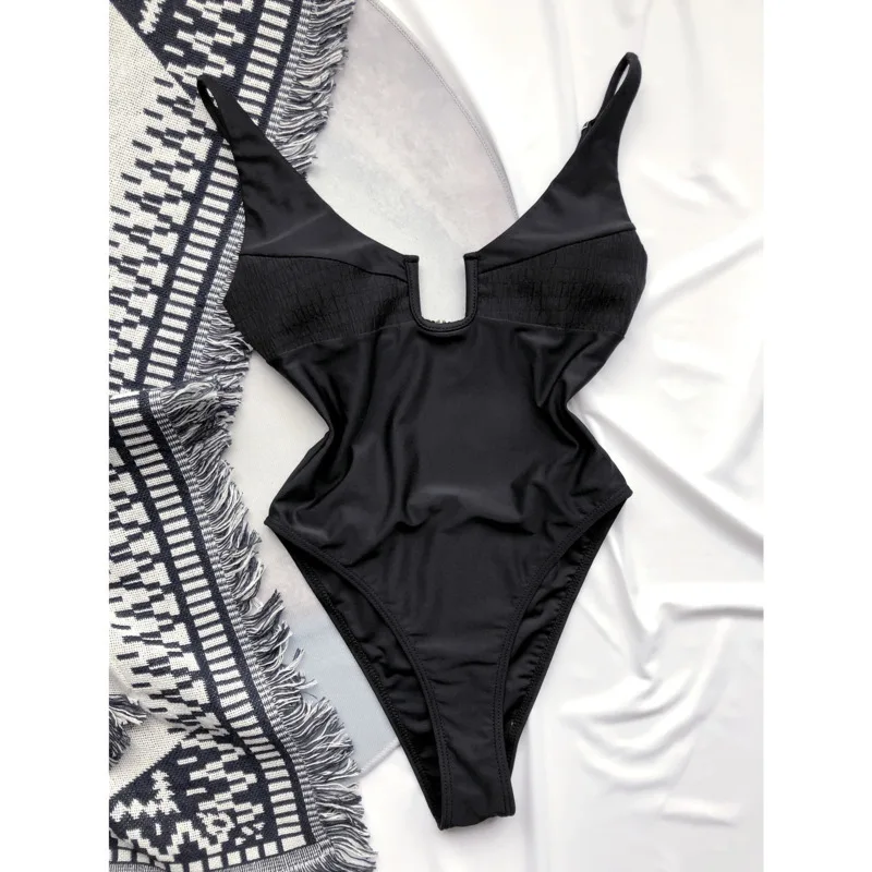 Сексуальный Одноцветный бикини, летний Цельный купальник с u-образным вырезом, купальник для женщин, монокини, новый пляжный купальный костюм для женщин, бикини с высокой талией