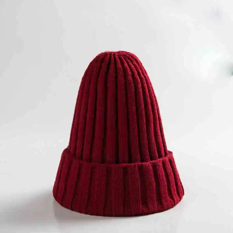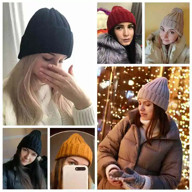 Новинка, вязаная женская Шапка-бини, однотонные осенне-зимние теплые шапки для женщин, женские шапочки, облегающие шапки, Повседневная вязаная шапка с острым носком