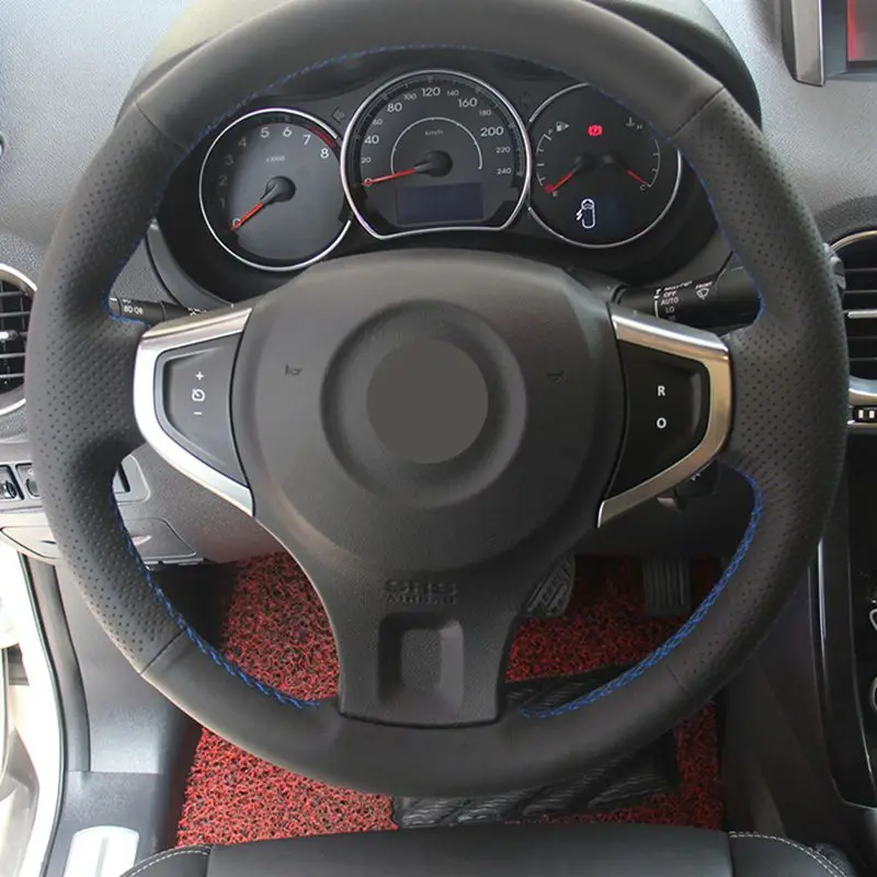 Черный сшитый вручную искусственный кожаный чехол на руль для Subar...