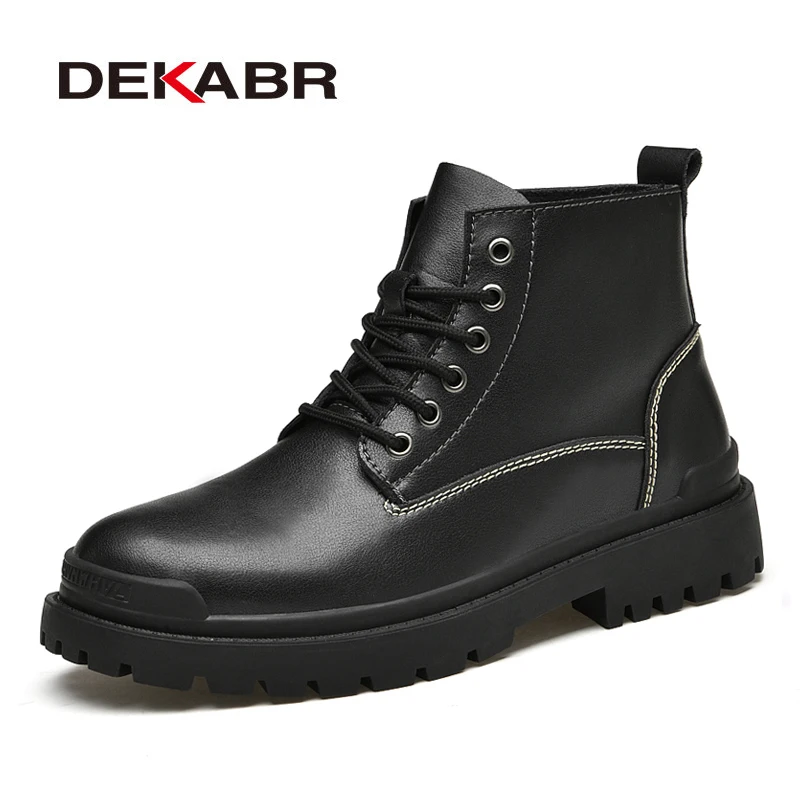DEKABR/зимние ботинки из натуральной кожи на нескользящей платформе; Мужские модные дизайнерские ботинки в байкерском стиле; Зимние теплые рабочие ботильоны