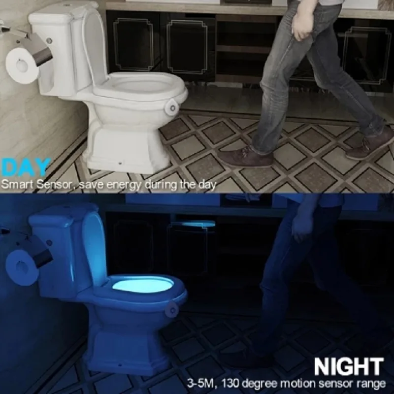 Светодиодный ночсветильник для сиденья унитаза светильник датчиком движения, 8 цветов, Сменные лампы, подсветка для туалета для детей