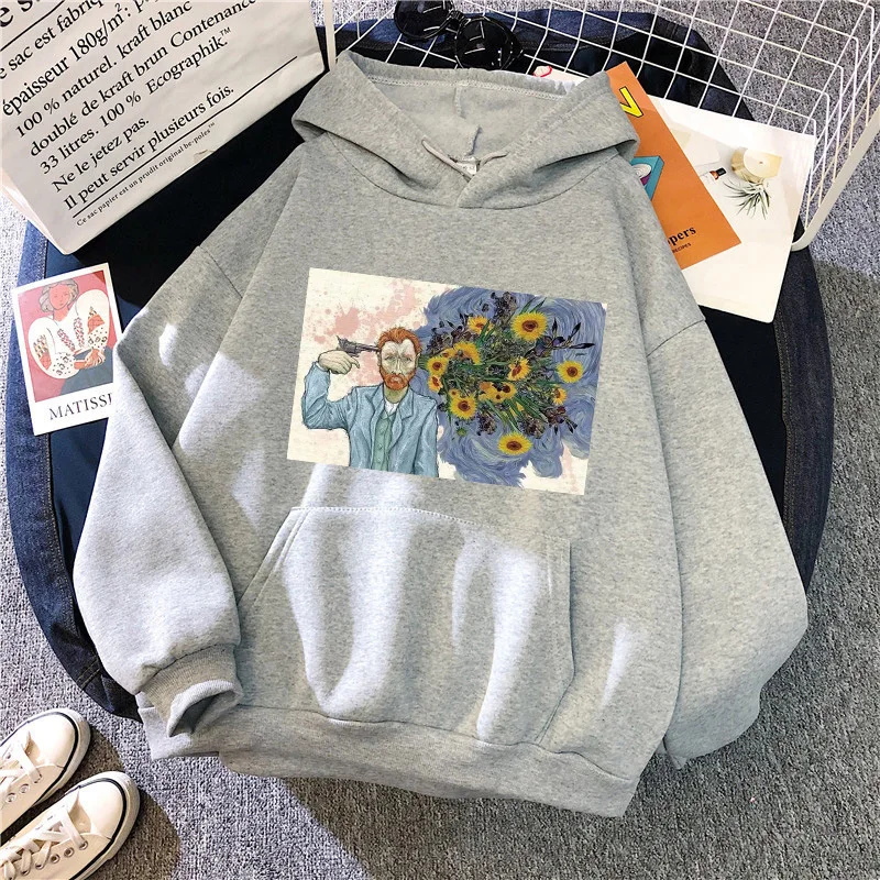 Осень 2021, Женская толстовка с капюшоном, ретро свитшот с принтом Ван Гога, пуловер, модные толстовки, теплая уличная одежда, новая Женская толстовка в стиле Харадзюку