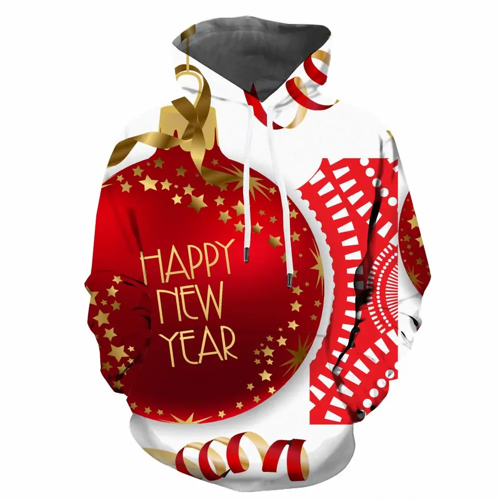 Худи мужское с 3D-принтом, свитшот на новый год, Повседневная Красн...