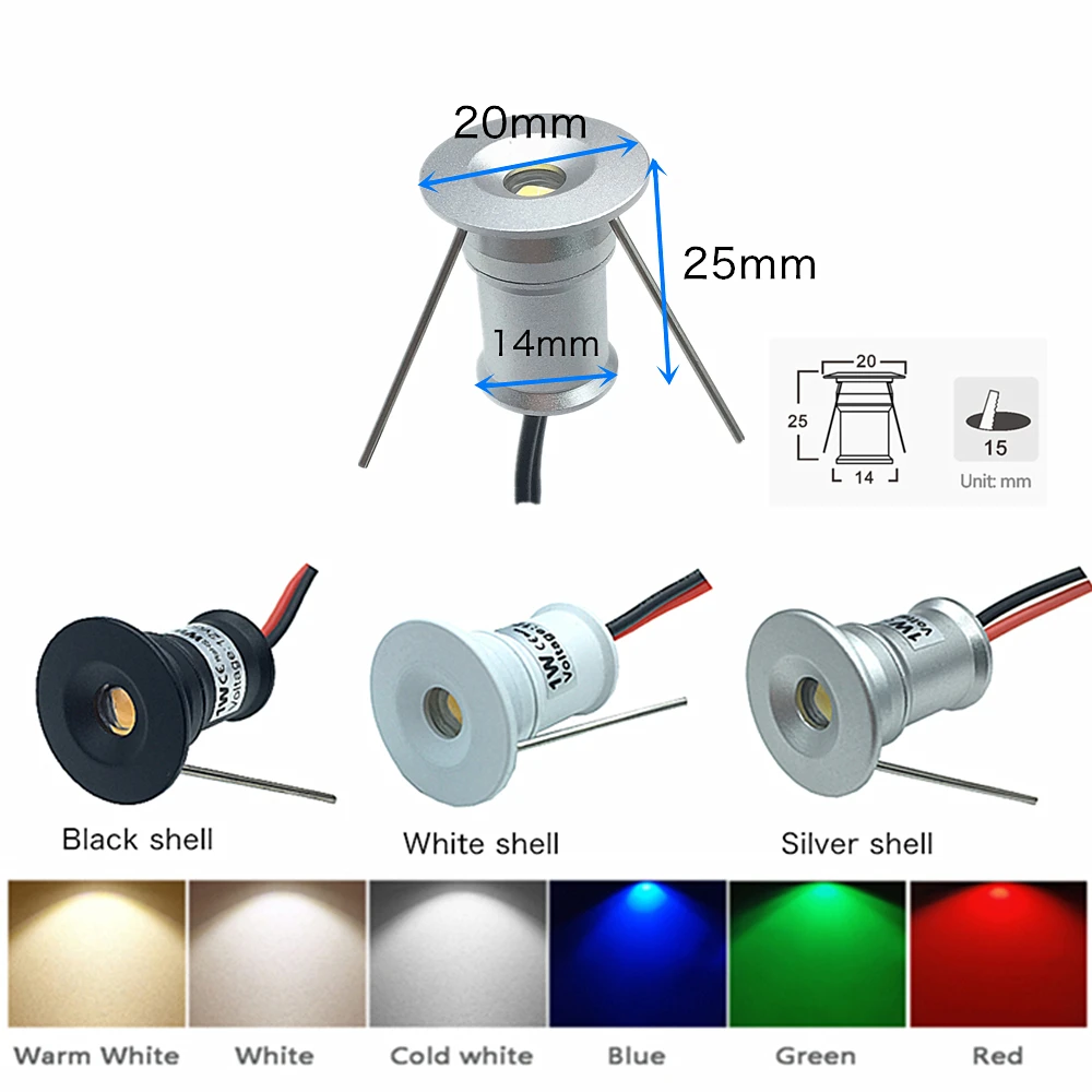 Особенности мини светодиодный светильник IP65 с трансформатором AC100-265VМощность: 1 ВтЛюмен: 95 лмВходное напряжение светодиода: DC12VВходное напряжение трансформатора: AC100-265VСветильник Угол луча: 30 ° или 120 °Класс защиты: IP65 водонепроницаемыйОсновной материал: алюминийКорпус корпуса: серебристый, черный, белыйРазмер корпуса: D20 мм x25 мм, отверстие для резки; 15 ммКабель: 47 см тефлоновый кабельРабочая температура: -25 °C ~ + 45 °CГарантия: 3 года с CE и ROHS, срок службы чипа 35 000 часовЦветовая температура: теплый белый (2700-3000K), натуральный белый (4000-4500K), холодный белый (6000-6500K), синий, зеленый, красный, RGBИспользование: комнатный декоративный светильник, KTV комнаты, лестницы указывающий светильник, шкаф витрина светильник, и другие DIY дизайн светильник ing
