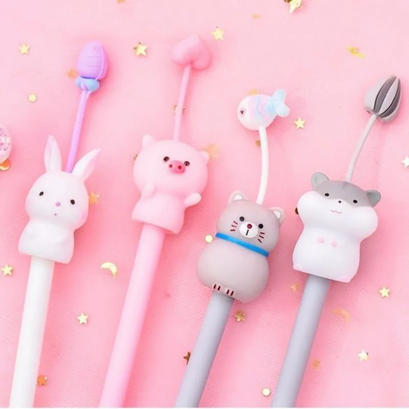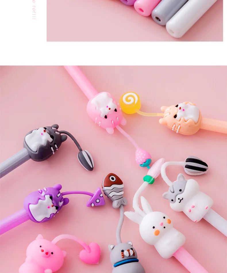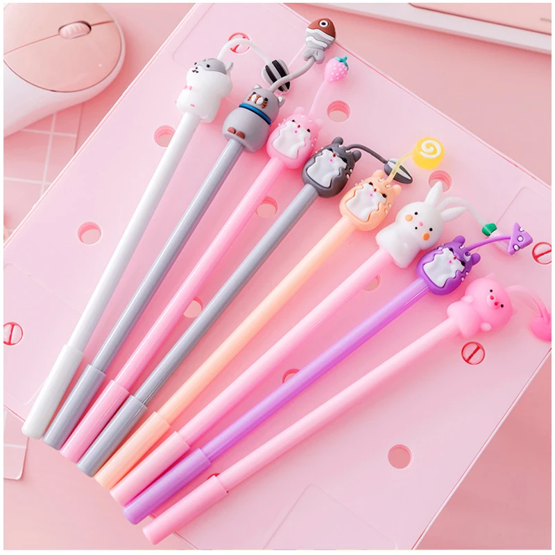 Гелевые ручки с милыми мультяшными котиками, свиньями, кроликами, 10 шт.лот, ручка с черными гелевыми чернилами с милыми животными, школьные канцелярские принадлежности, офисные принадлежности, подарок