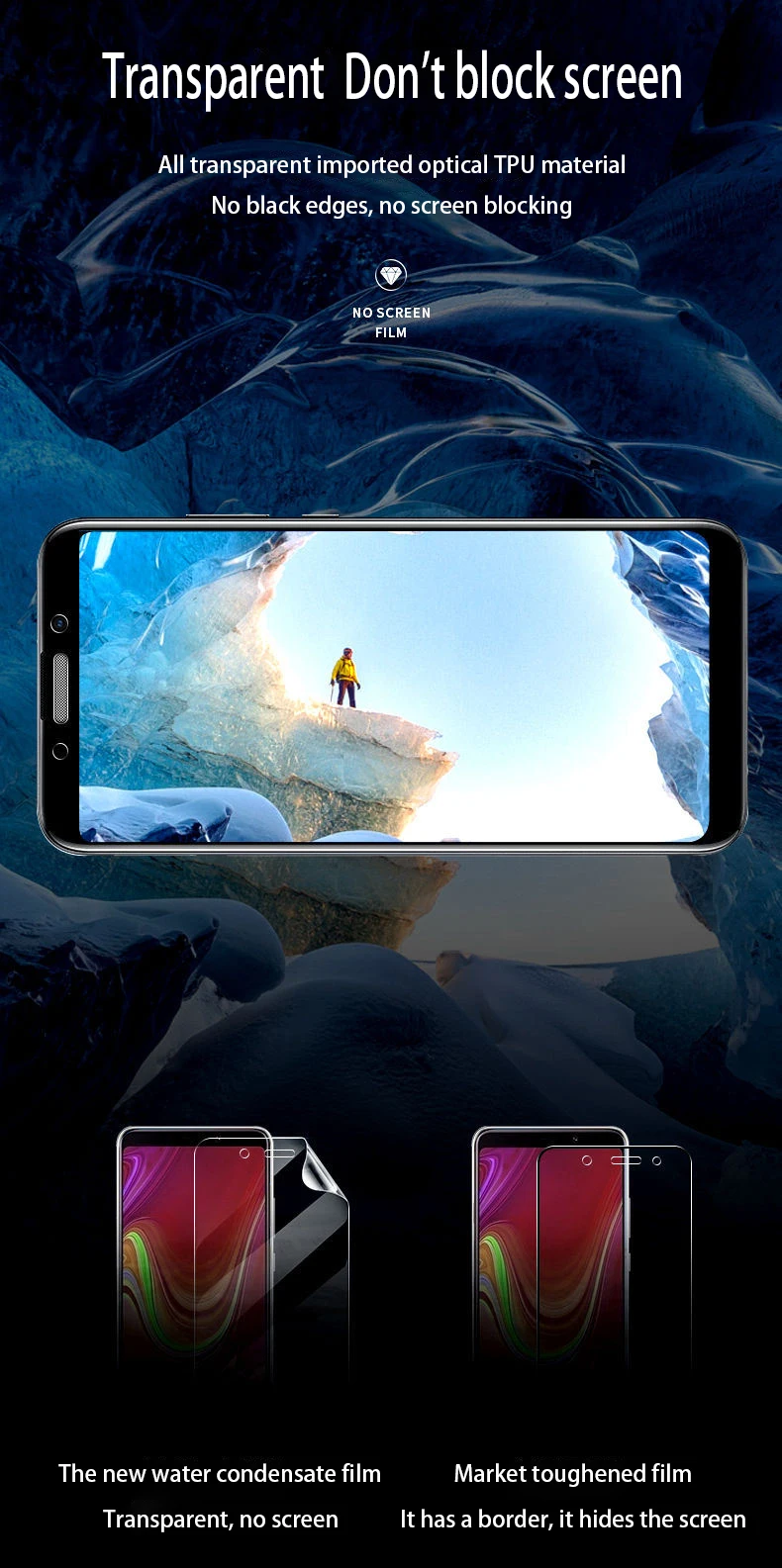 Все прозрачные импортные оптические черные края из ТПУ, без блокировки экранаНовая пленка для конденсации водыПрозрачный, без экранаЗакаленная пленка для рынкаУ него есть borded, tie he te