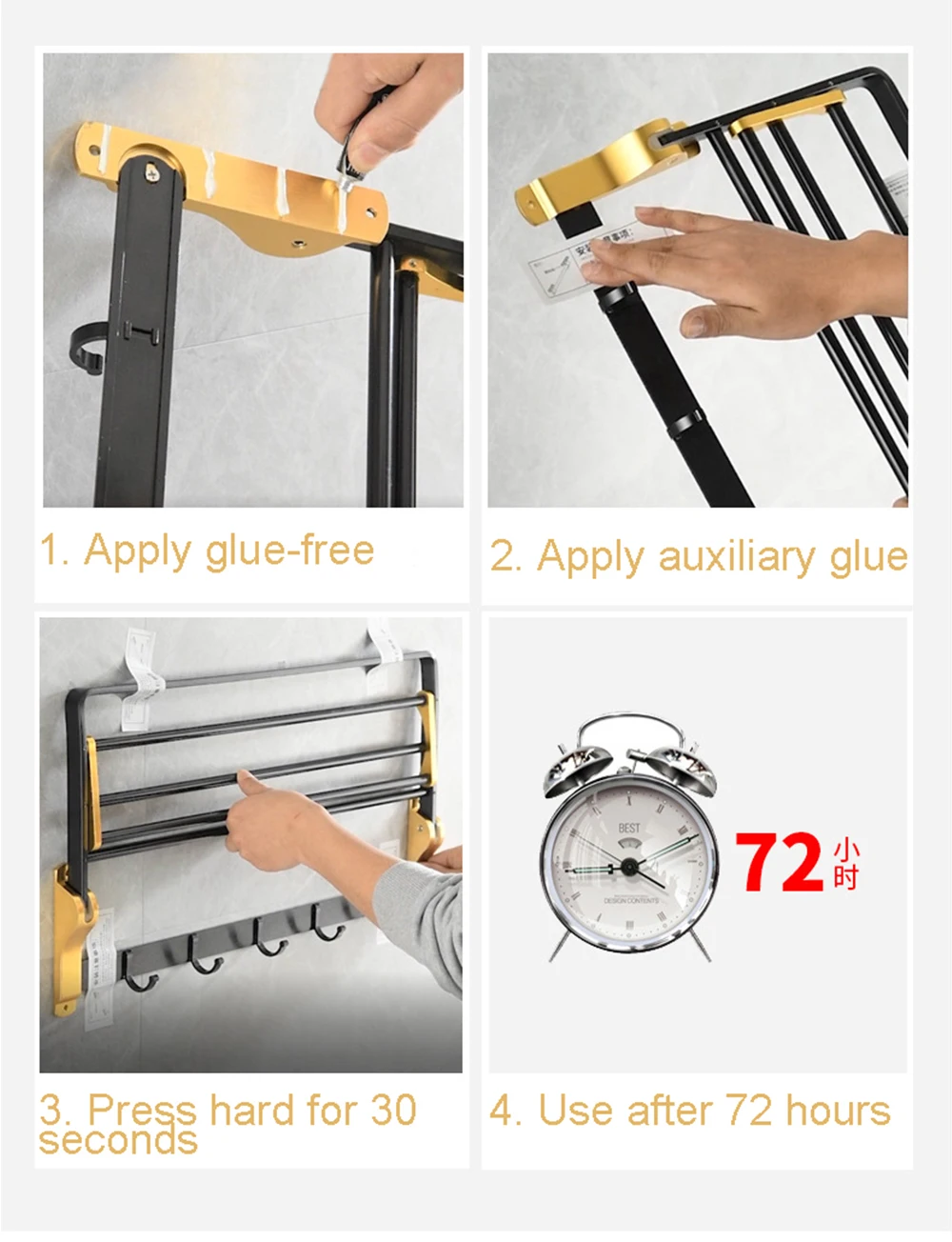 Вешалка для полотенец золотистаяЧерная Алюминиевая, 40-60 см