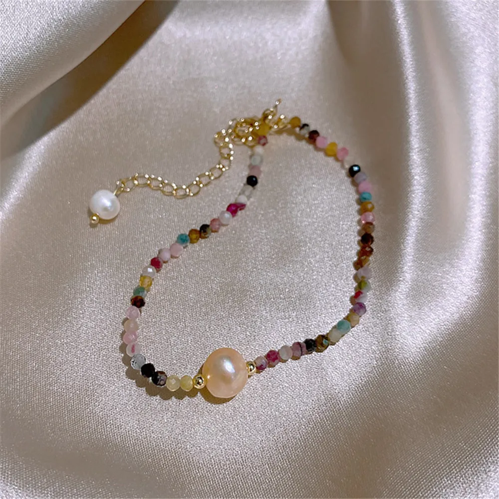 Позолоченный корейский браслет с пресноводным жемчугом, роскошный браслет с кристаллами, простая индивидуальная бижутерия, Женские Ювелирные изделия