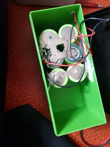 18wh cell used , 6 X 3.6v. Multimeter reading 12.05v, 12.85v(while charging). Individual cell fully charged at about 4.11v as seen. Too powerful for my pico pc, needs a dc to dc buck-boost converter to step down to power brick reading of 11.28v