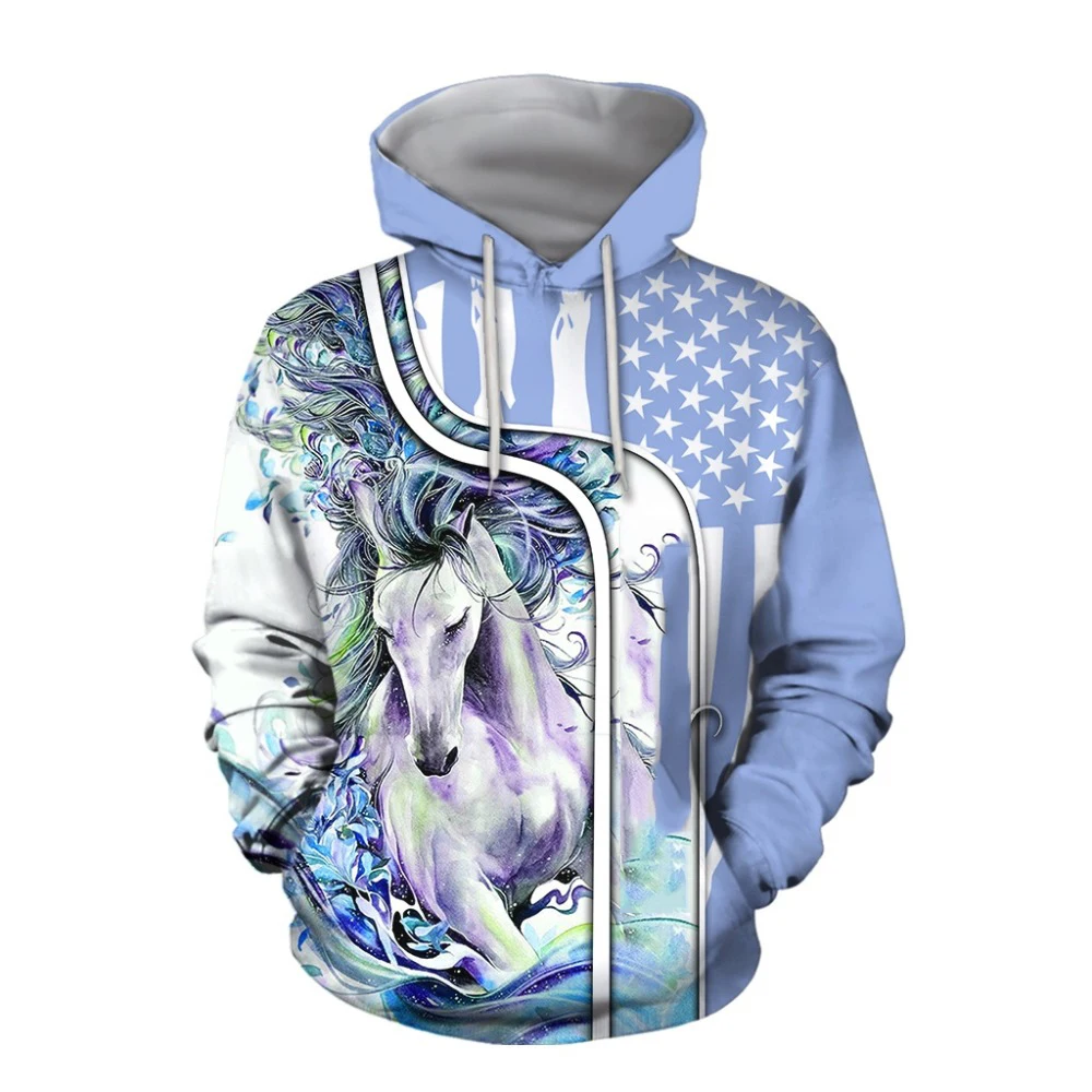 Свитшот мужской с 3D-принтом, худи с принтом лошади, повседневный Свободный пуловер в стиле Харадзюку, большие размеры, осень