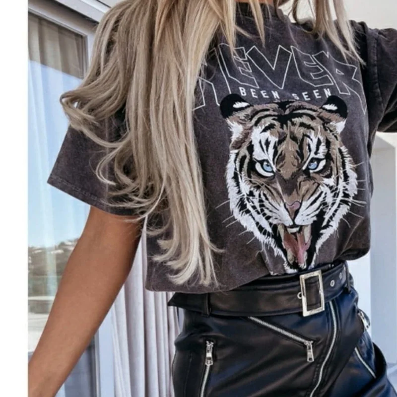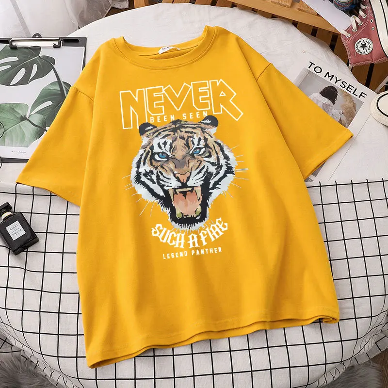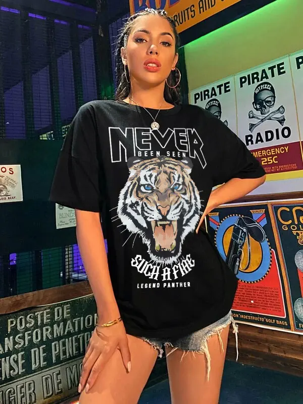 Модная черная футболка с принтом головы тигра, женская футболка с коротким рукавом и круглым вырезом, модная женская футболка, Повседневная футболка