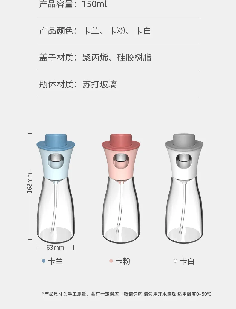Описание: Распылительная бутылка с распылительным маслом пуш-типа обеспечивает контроль качества масла и здоровый образ жизни для приготовления пищи. Бутылка для приправ имеет встроенное сопло, пыленепроницаемое, а насадок типа push-type удобен и быстро распыляет масло. Масло может иметь дизайн верхней крышки бутылки шляпы, а стороны садятся вниз, чтобы соответствовать форме руки и сделать захват более удобным. Распылительная бутылка разработана с большим калибром, что удобно для заливки масла, и не требуется воронка, чтобы избежать проливания при заливании масла. Распылитель масла пуш-типа изготовлен из материала PP, который является здоровым и не имеет специфического запаха, гибкий и небьющийся, и безопасен для контакта с пищевыми продуктами. Спецификация: Цвет: синий, розовый, белый. Материал: Крышка: полипропиленовая смола/силикон, корпус бутылки: стекло. Размер: как на фотографии. Емкость: 150 мл. Примечание: Из–за разных компьютерных разрешений может быть небольшое цветовое искажение. Возможны незначительные погрешности из-за различных ручных измерений. Посылка включает в себя 1 x бутылка для масла.