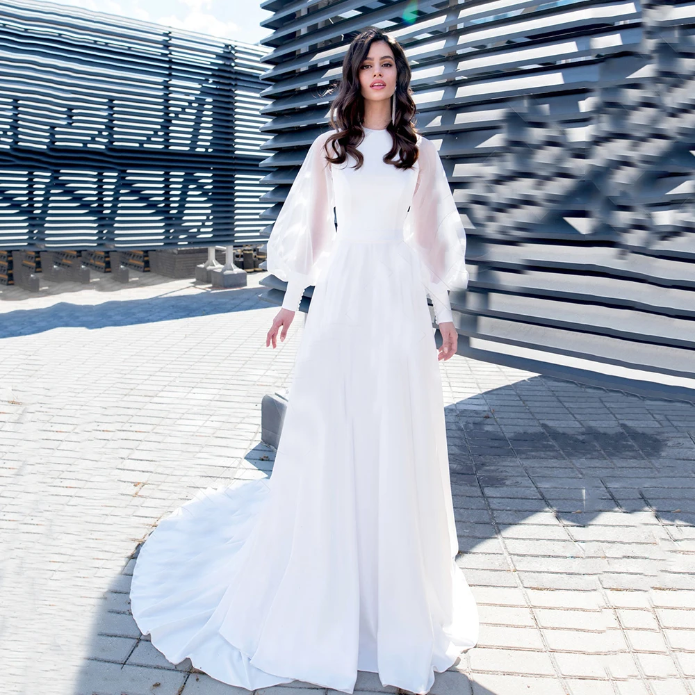 Винтажное свадебное платье, Простые Свадебные платья с рукавами-фонариками, атласное дешевое свадебное платье, свадебные платья