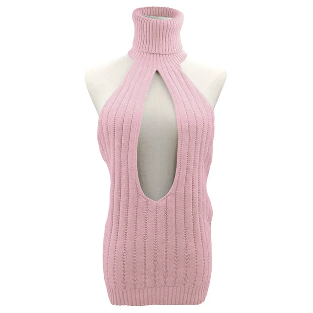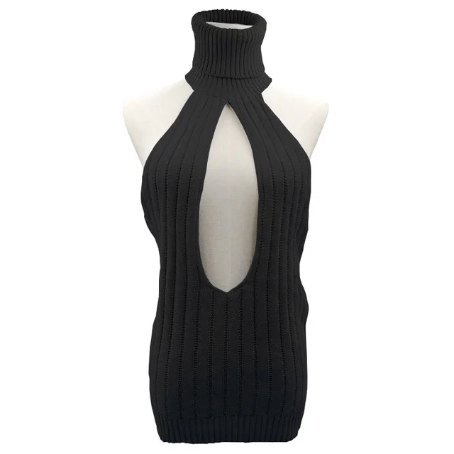 Осень 2022, сексуальный женский свитер с открытой спиной, водолазка с открытой грудью, вязаные пуловеры с вырезами, осенние свитера, женский джемпер