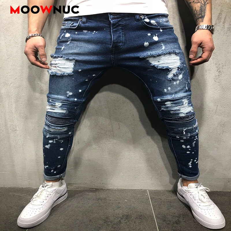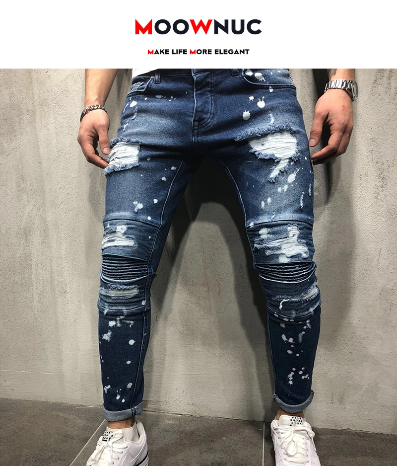 Новинка 2021, Классические мужские джинсы, дизайнерские облегающие брюки для мужчин, повседневные обтягивающие прямые осенние уличные брюки MOOWNUC