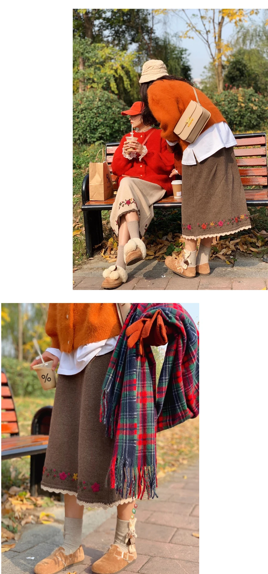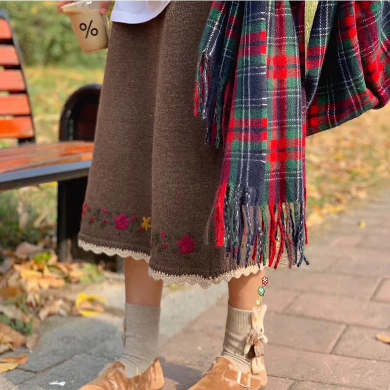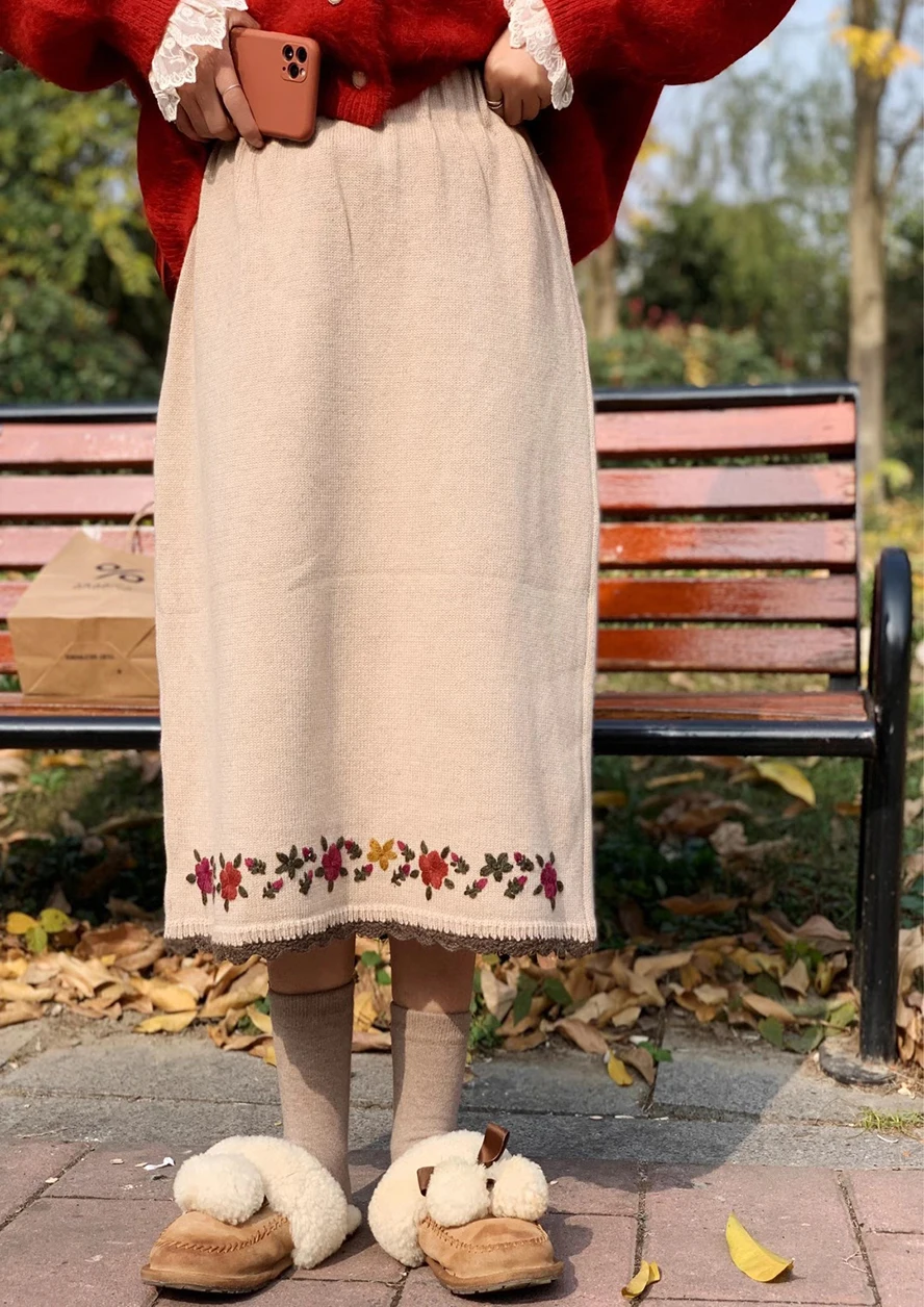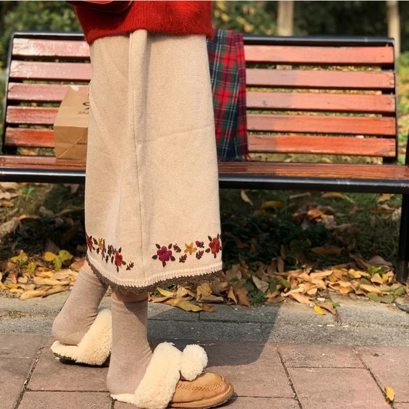 Женская трикотажная юбка с цветочной вышивкой, на осеньзиму