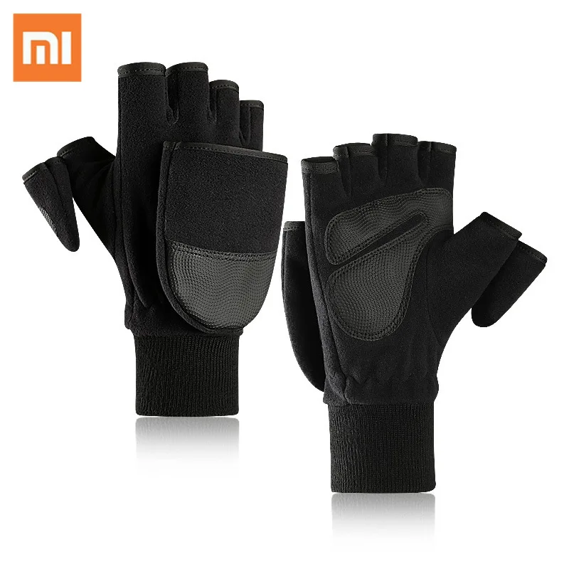 Мужские зимние перчатки Xiaomi, флисовые двухслойные плотные перчатки с откидной крышкой и открытыми пальцами для фитнеса
