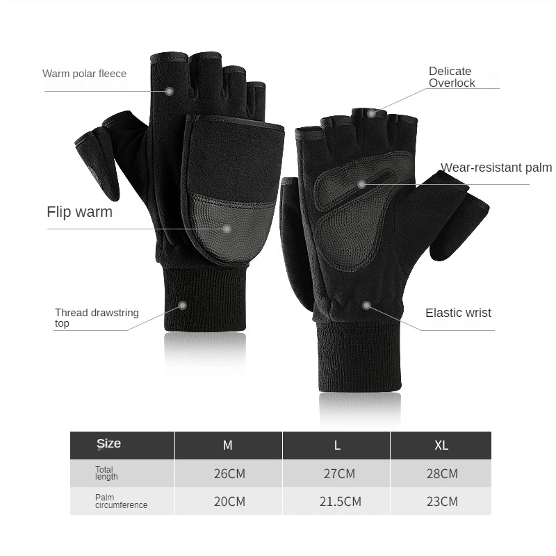Зимний флип-чехол, черные рыболовные перчатки, Нескользящая дышащая...