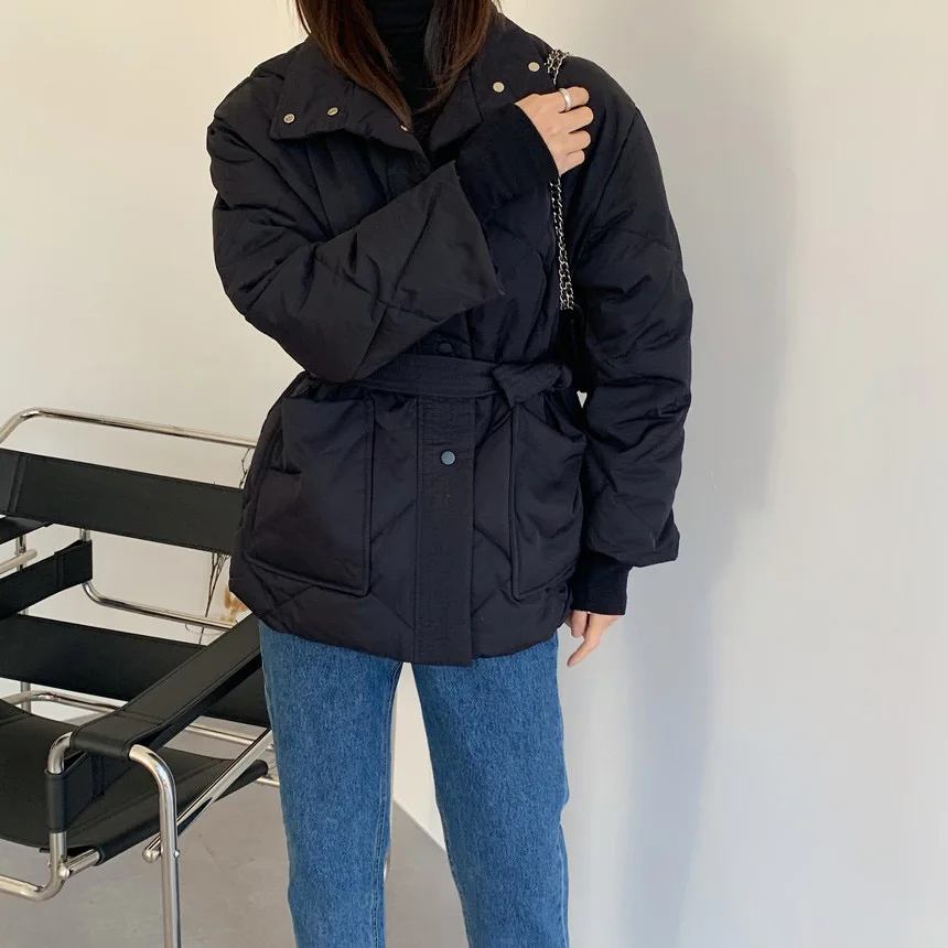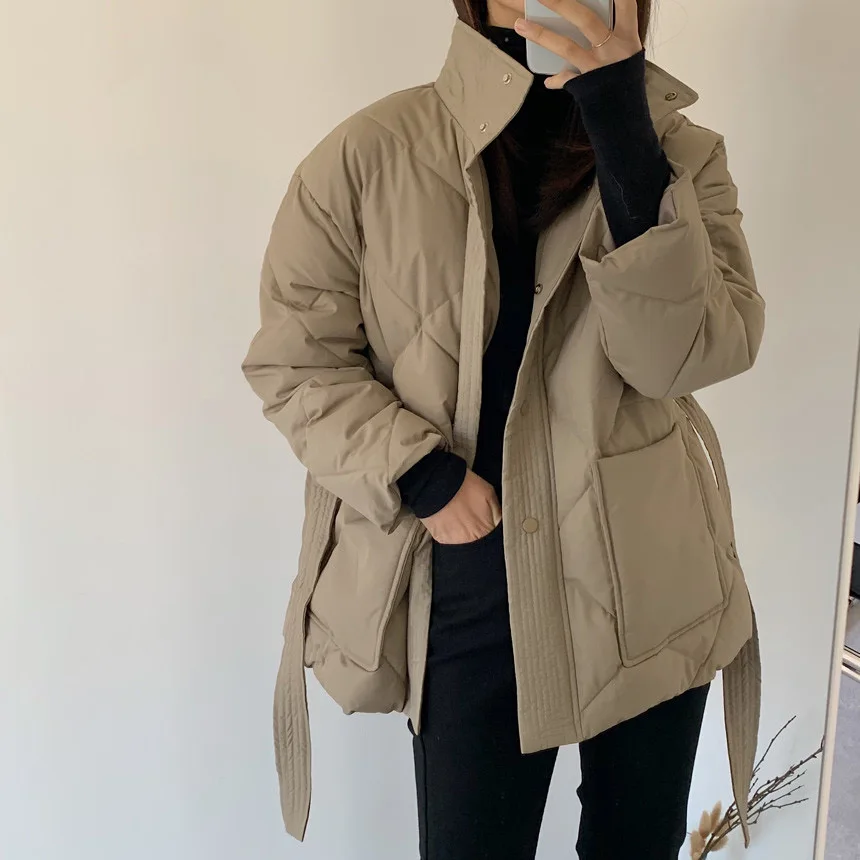 Женское пальто с хлопковой подкладкой Genayooa, плотное однобортное пальто на молнии, со шнуровкой, парка с воротником-стойкой для осени и зимы