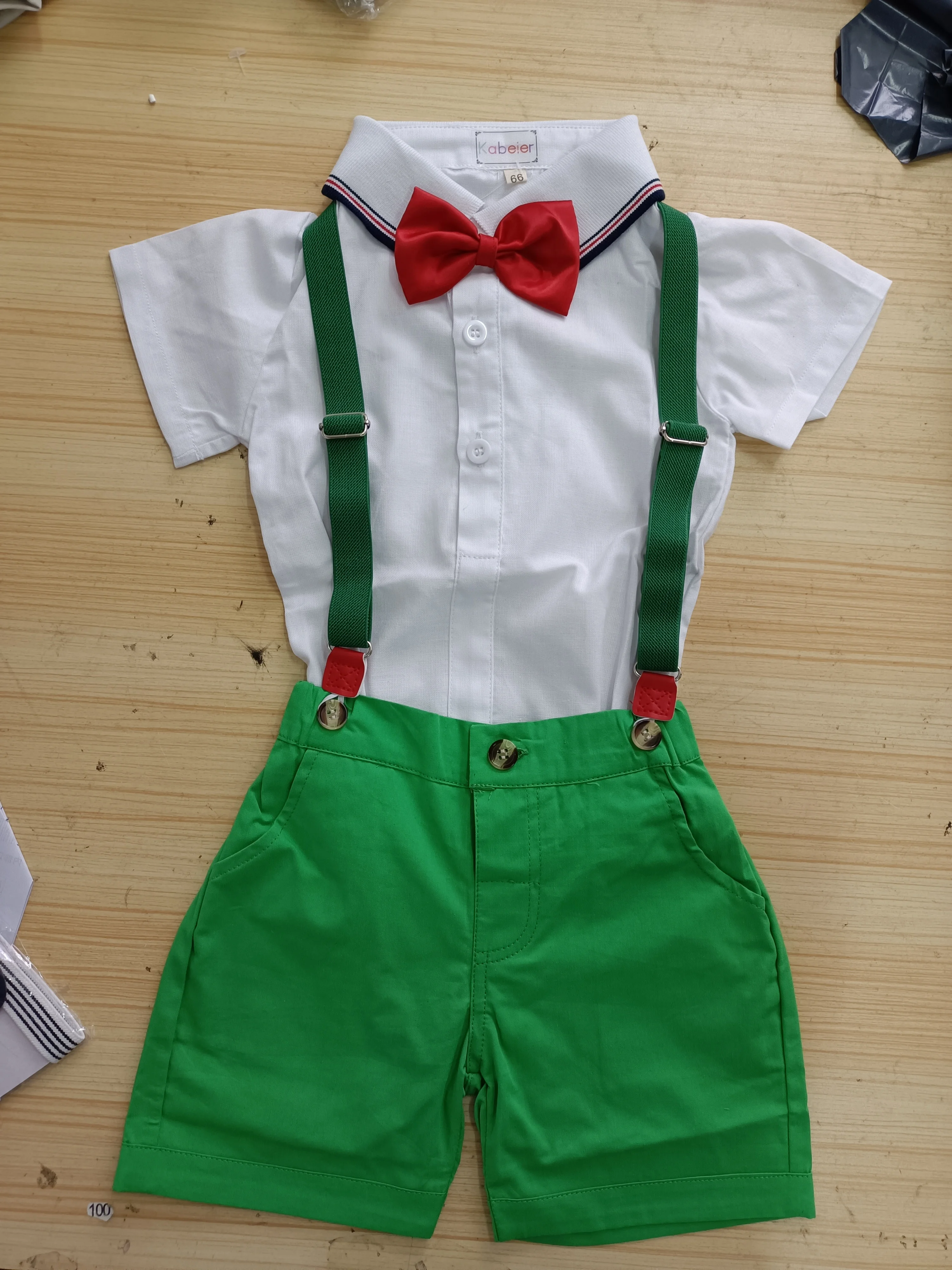 Детская одежда для новорожденных, рабочая шляпа + белый комбинезон + зеленые шорты + пояс + обувь, хлопковый костюм для детей 3 -24 месяцев