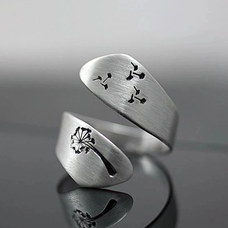 Простое кольцо с одуванчиком и зеленым лесом, мужское и женское регулируемое кольцо неправильной формы, модное открытое свадебное ювелирное изделие для вечеринки, подарок