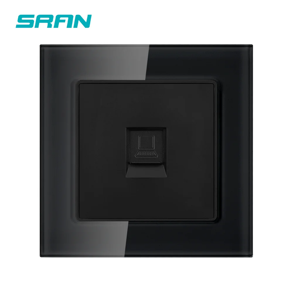 Европейская розетка SRAN для интернета, тип CAT6, панель из хрустального закаленного стекла 82 мм * 82 мм, бытовая розетка интерфейса RJ45 F6