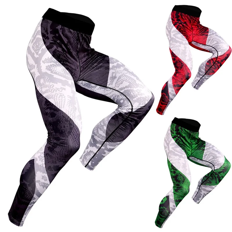 Мужские длинные леггинсы для бега компрессионные с принтом змеиной кожи осенние фитнес-колготки мужские быстросохнущие мужские спортивные эластичные спортивные штаны для тренажерного зала