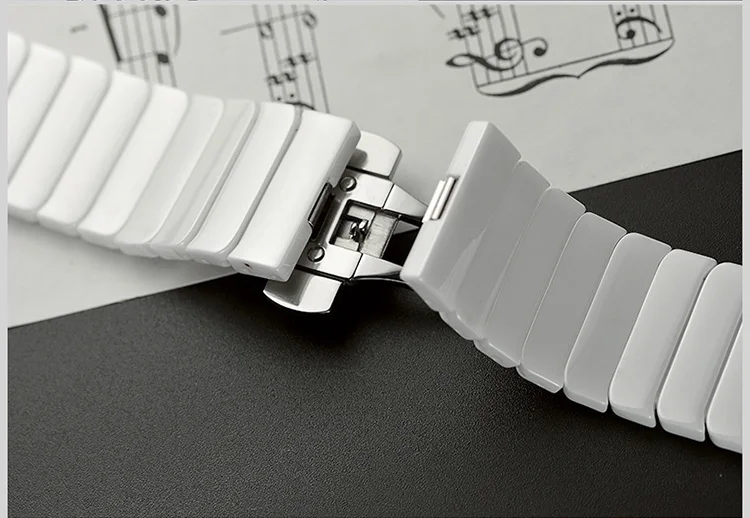 Особенности: подходит для всех версий Apple Watch Series 1/2/3/4 группа Материал: керамика Длина ремешка: 38 мм 40 мм: 165 мм 42 44 мм: 185 мм, 38 мм, 40 мм: 74 г, 42 мм, 44 мм: 84 г этот модный роскошный керамический ремешок для часов отличается высококачественным мастерством на вашем запястье. Легко снимается с помощью прикрепленного маленького штифта, поставляется с адаптерами, легко устанавливается и снимается. Звенья изготовлены из натурального керамического материала, что делает ваш ремешок для часов гладким, привлекательным и безопасным. Пряжка-бабочка из нержавеющей стали обеспечивает стабильность и удобство использования. Посылка включает в себя: 1 керамический ремешок для часов (часы не входят в комплект)
