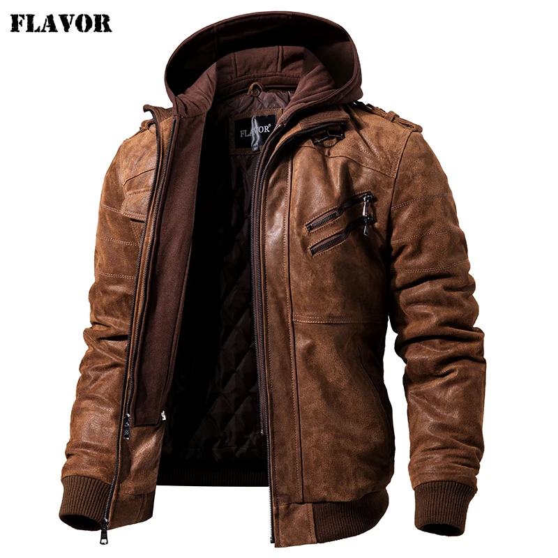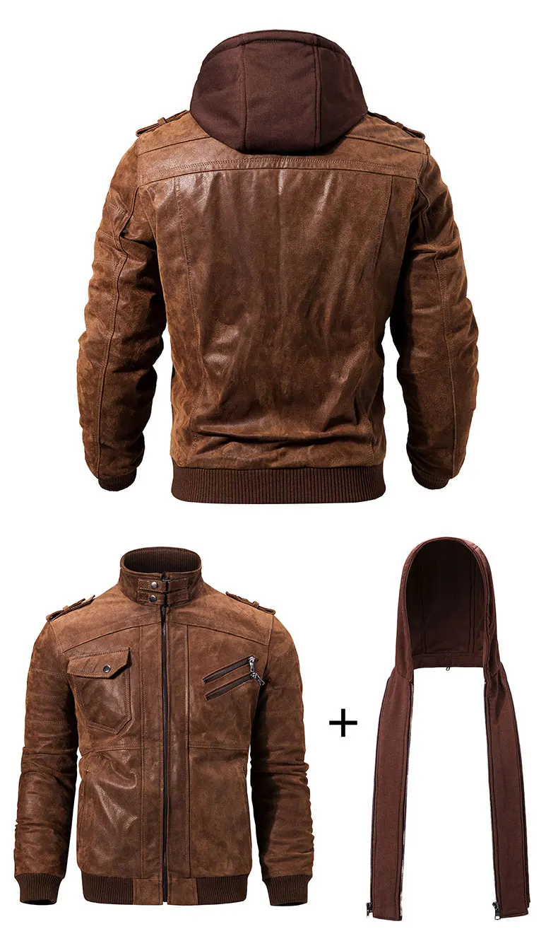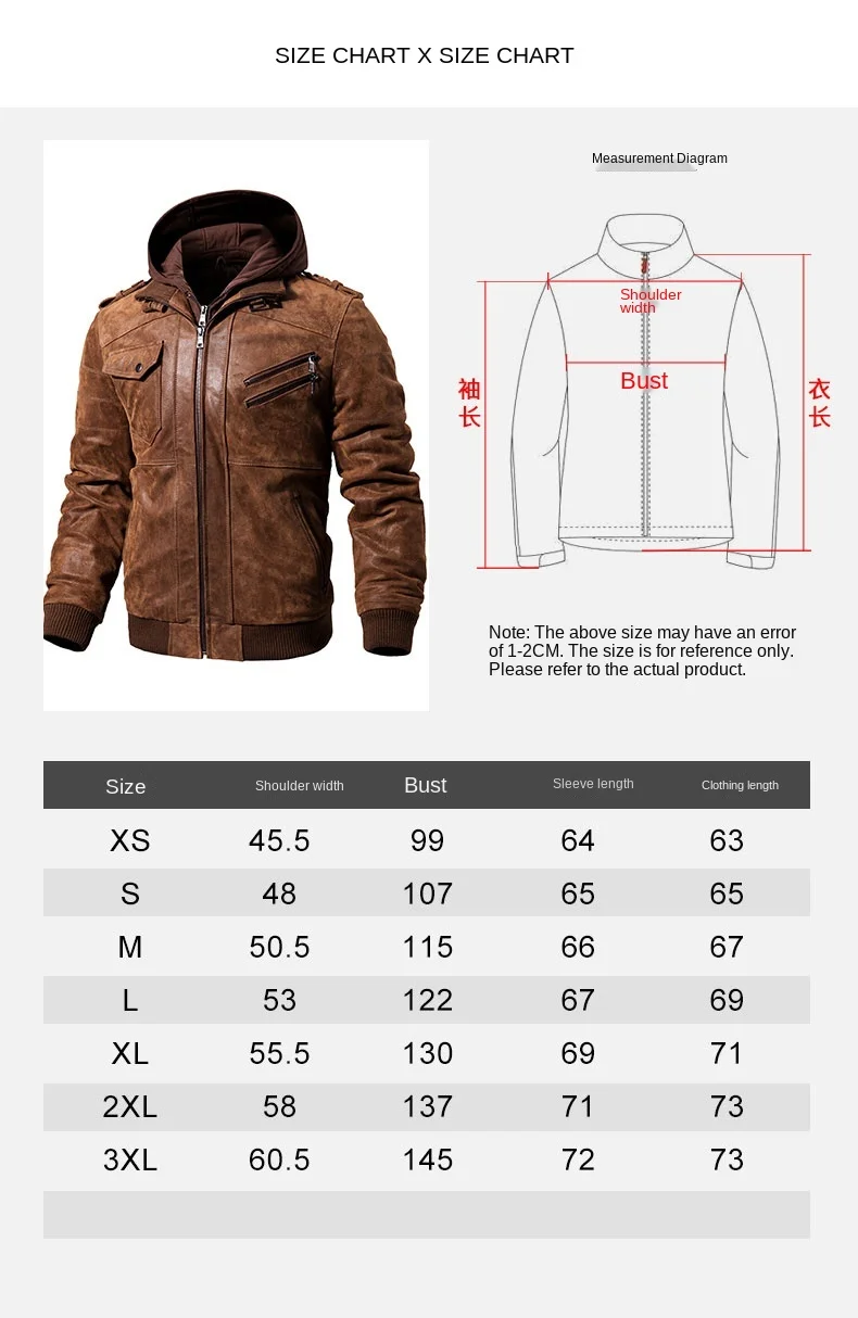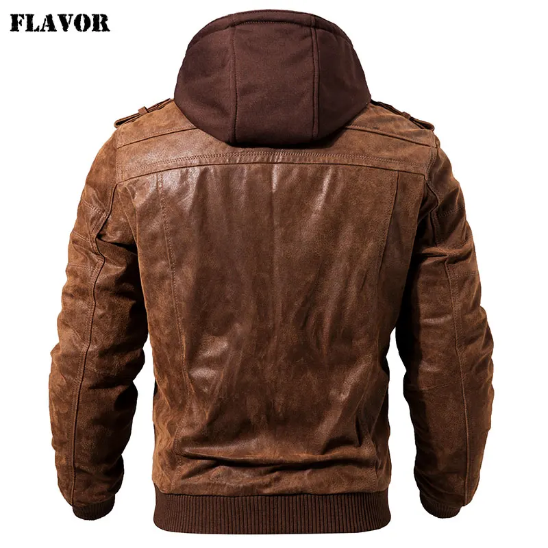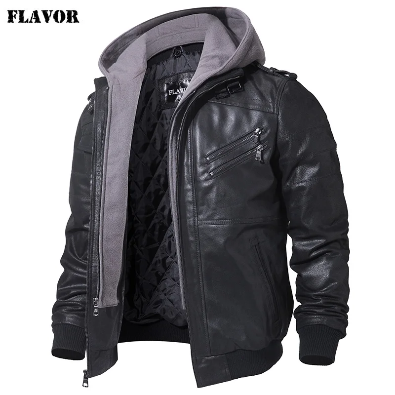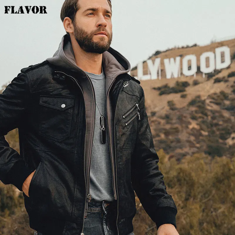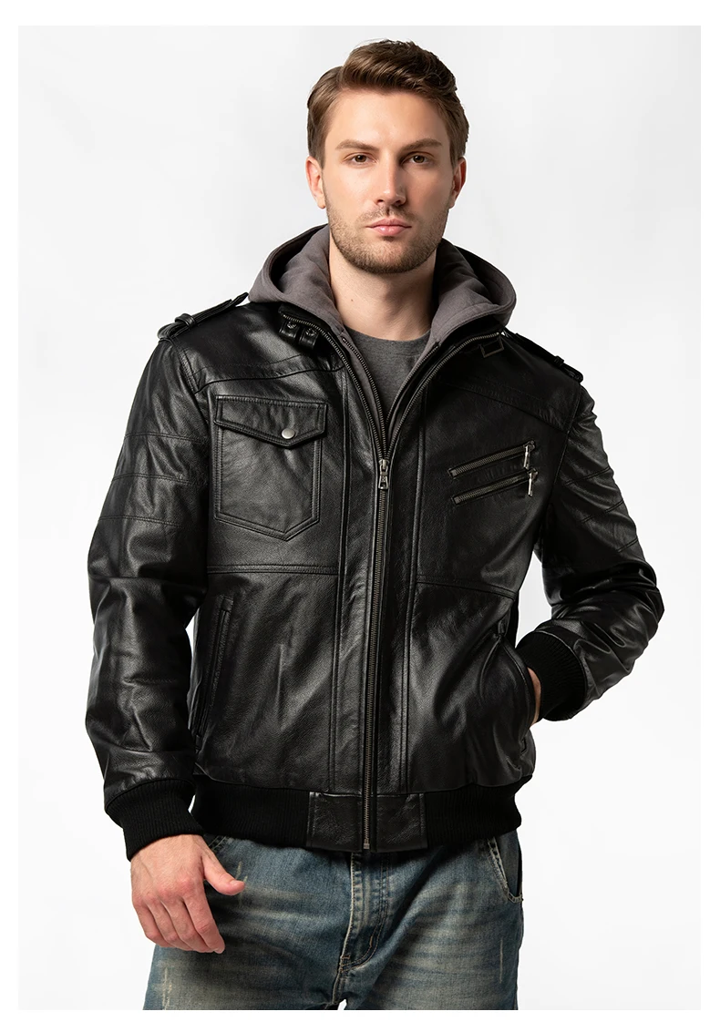 Мужская кожаная мотоциклетная куртка Haining с коротким капюшоном, съемная кожаная куртка с двойной планкой, одежда из натуральной кожи для мужчин