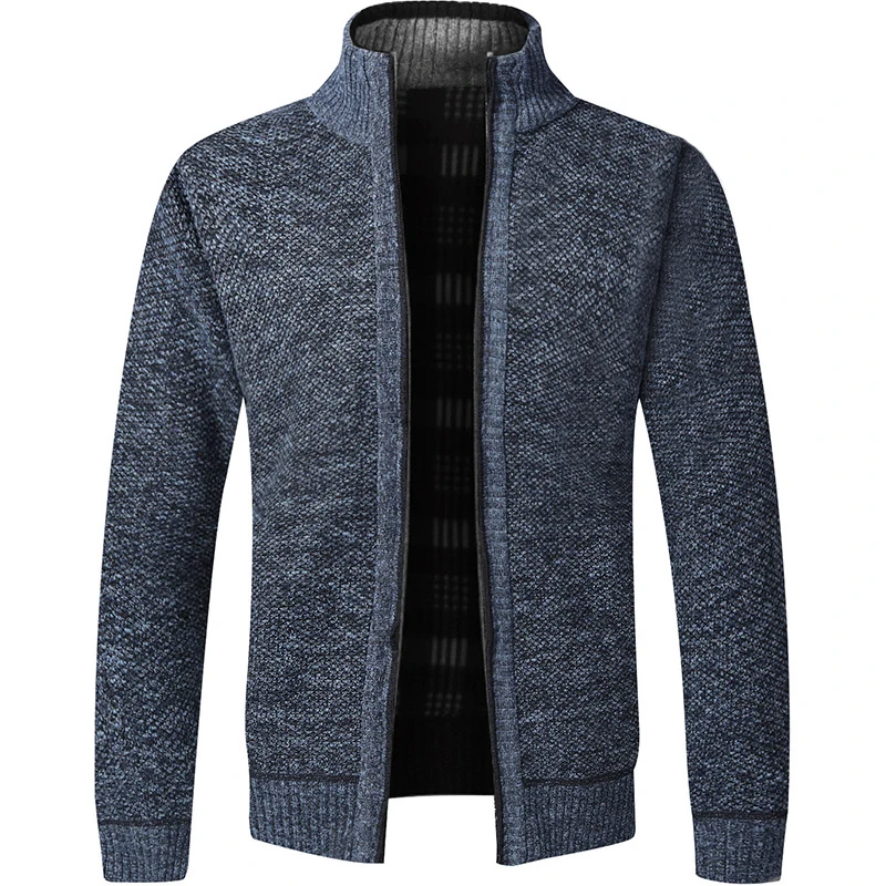 Мужской свитер на осень и зиму, новинка 2021, кардиган на молнии с дураком, теплый повседневный Свободный вязаный свитер, однотонный, с воротником-стойкой