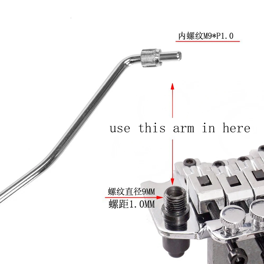 ●Плечо тремоло для электрогитары, специально для Floyd Rose Tremolo bridge. ●Материалы: металл,Изготовлено из высококачественного железа, с высоким блеском. ●Это помогает вам легко регулировать натяжение нити и менять тон. ●Длина руки: прибл. 175 мм ●Диаметр руки: прибл. 6 мм ●Внутренняя резьба: 9 мм