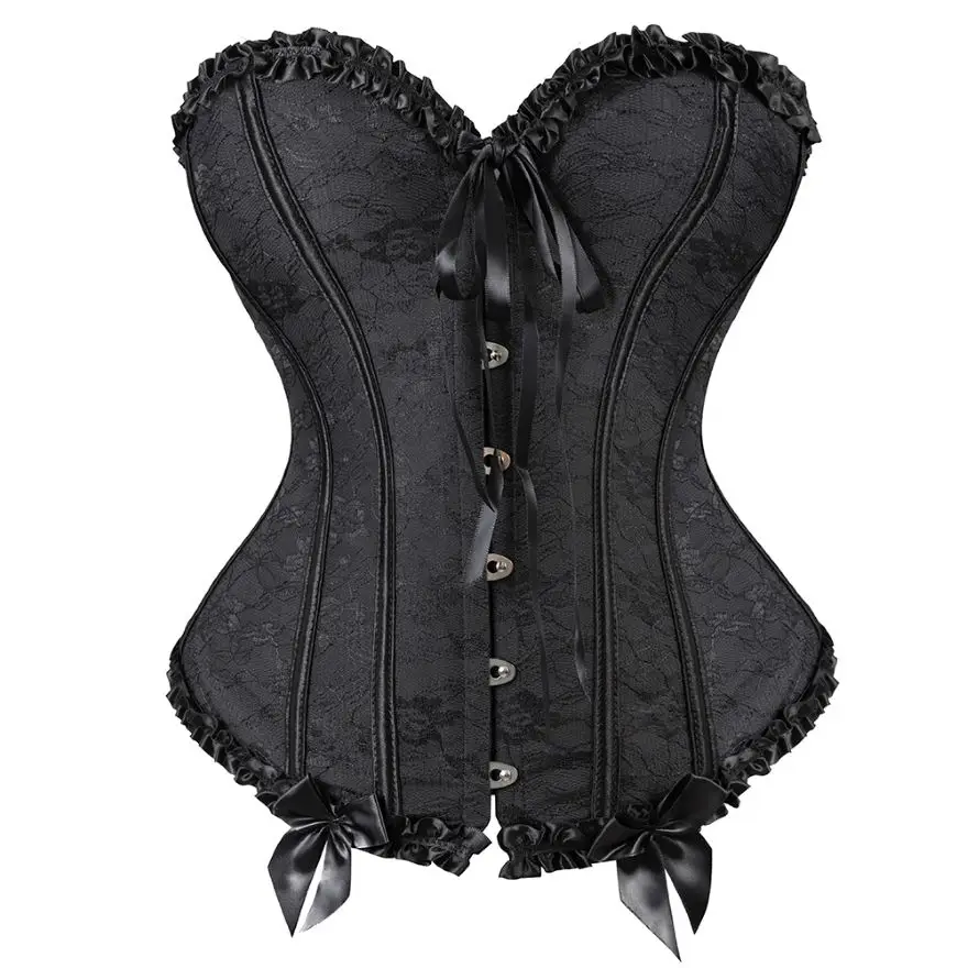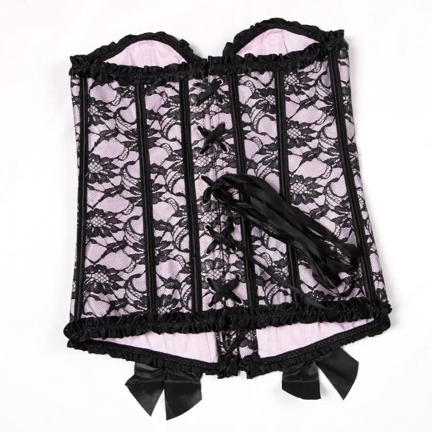 NameSexy Vintage Bow Lace Floral Overlay Corset