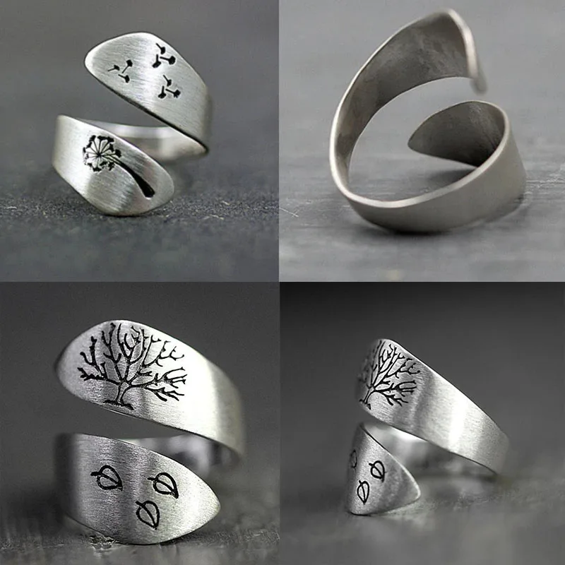 Мужские и женские кольца с изображением дерева жизни одуванчика простые обычные металлические кольца креативное открытие пальца свадебная вечеринка Ювелирные изделия Подарки