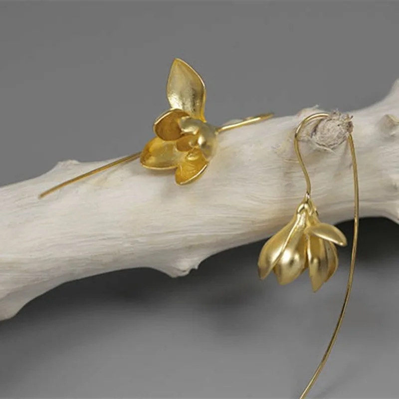 Элегантные серьги с цветком магнолии, позолоченные серебряные серьг...