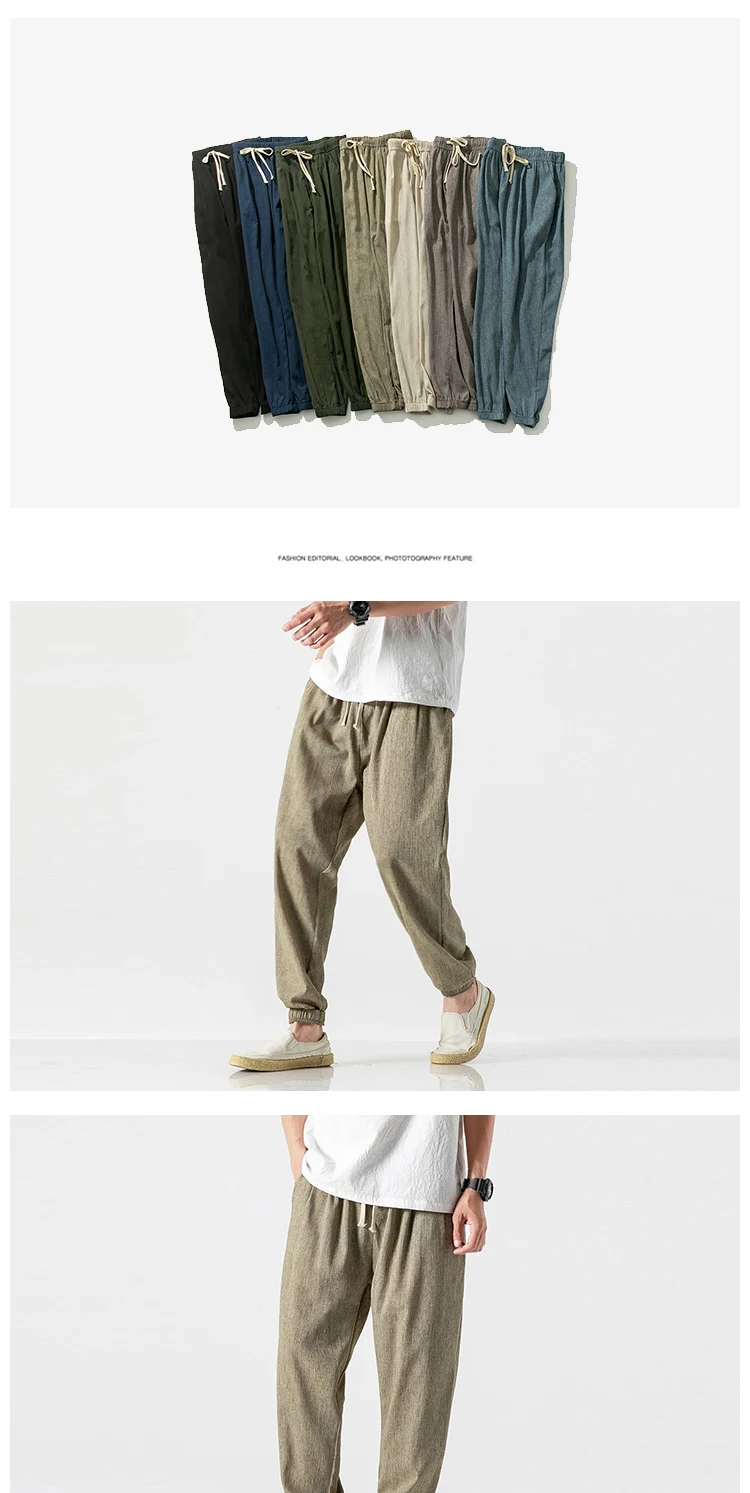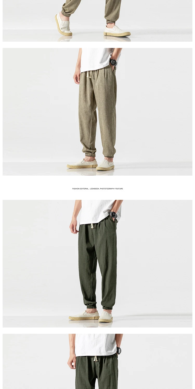Штаны-шаровары мужские из хлопка и льна, летние, мешковатые, 2020