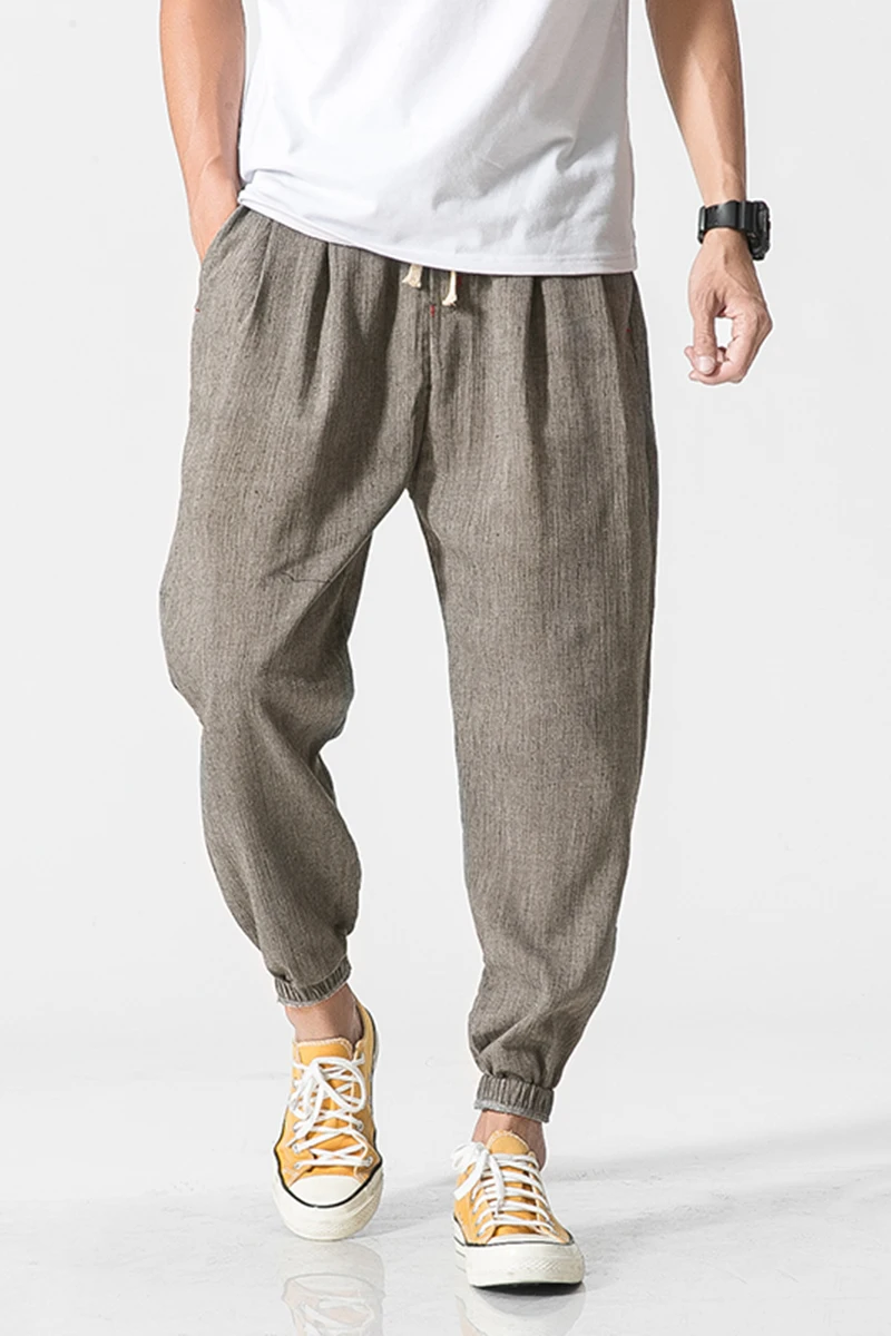 Мужские льняные брюки, штаны-шаровары, мужские брюки для фитнеса, м...