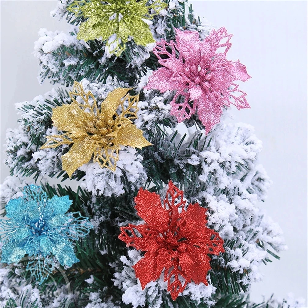 5 шт. блестящие рождественские искусственные цветы рождественские у...