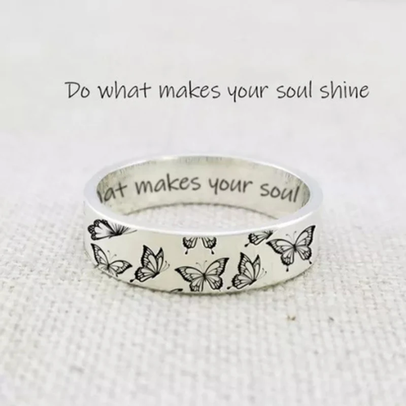 Женское кольцо в стиле ретро с гравировкой стрекозы, бабочкой и над...
