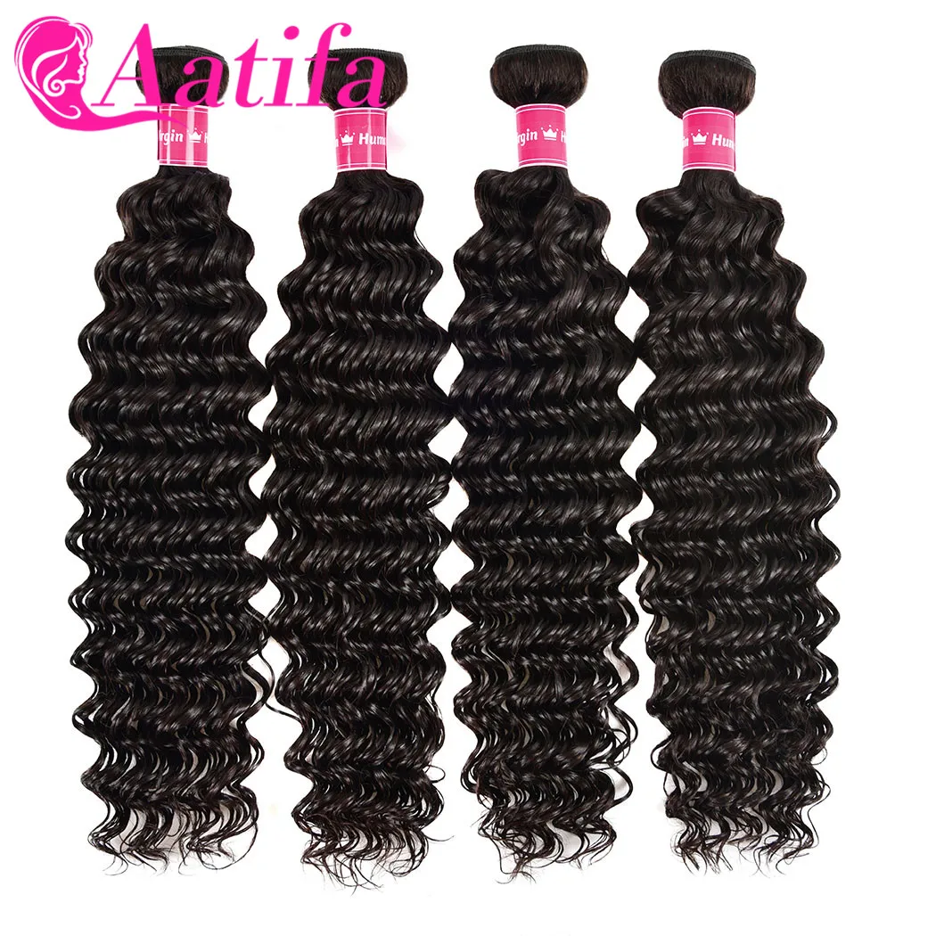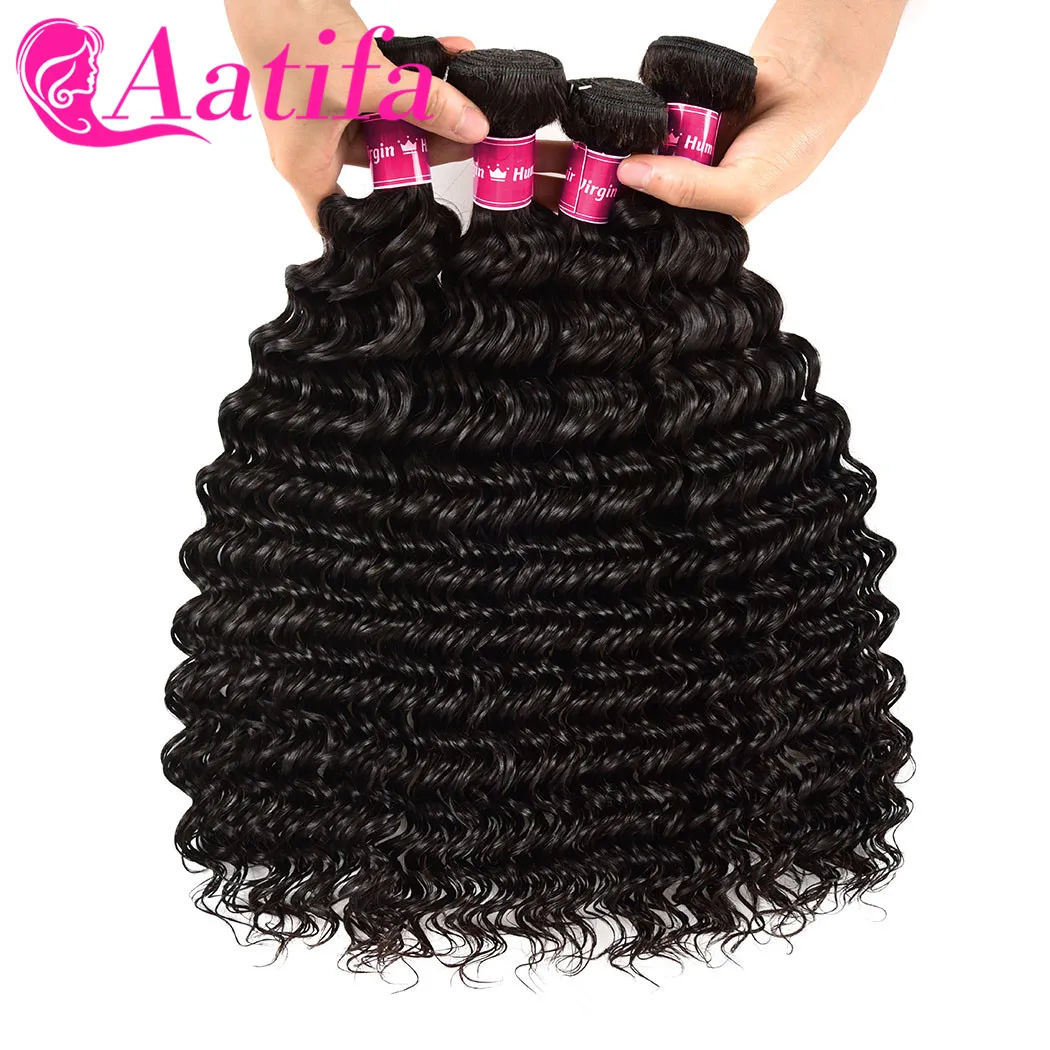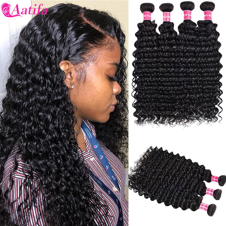Пучки волос с глубокой волной 100% пряди пучки волос с переплетением, пряди человеческих волос, бразильские волосы для наращивания без повреждений, 30 дюймов, натуральный цвет, Aatifa