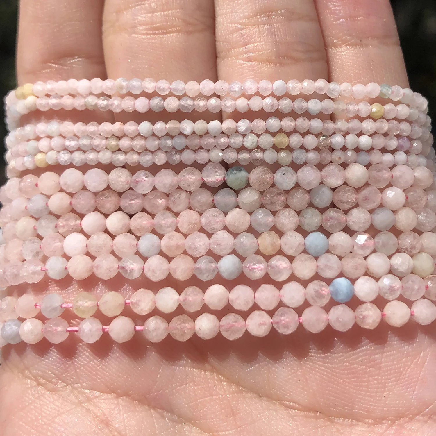 Бусины Из Натурального цветного морганита AA, граненые маленькие круглые бусины с микрогранями для изготовления ювелирных изделий сделай сам, материалы для браслетов
