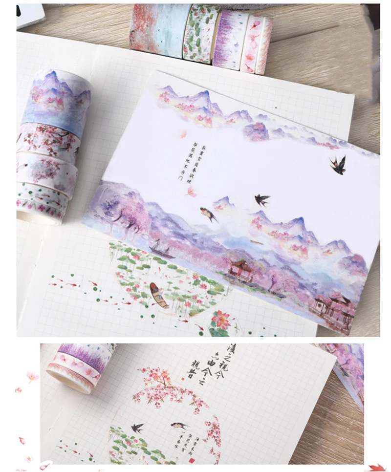 Бумага васи Kawaii, 10 рулонов, набор маскировочной клейкой ленты ц...
