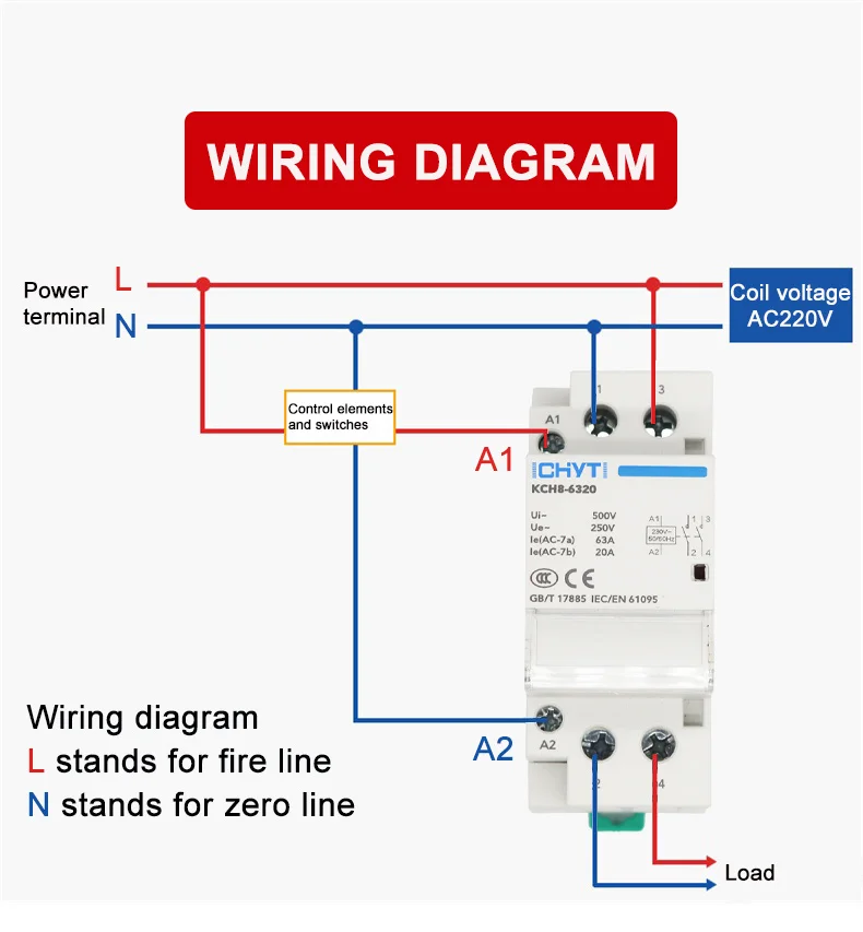 AC контактор для дома-это в основном предназначены для переменного тока 50 Гц или 60 Гц цепей с 230/400V. Номинальное рабочее напряжение при AC-7a использовании, Номинальное рабочее напряжение до 230 В, номинальный рабочий ток до 63А, Номинальное рабочее напряжение в использовании AC-7b, номинальный ток до 20А. Использование в разрыве мощности ниже 6kA цепи. Для расстояния подключения или прерывания цепи.Применение: для дома, квартиры, отеля, автоматическое отключение или подключение питания.Нормальные условия работы и установки:1. Температура окружающей среды: от-5 °C до + 40 °C, средняя температура не более + 35 °C в течение 24 часов.2. Высота: не более 2000 м.3. Атмосферные условия: относительная влажность места установки должна быть не более 50%, когда максимальная температура + 40 °C: Если при более низкой температуре допускается более высокая относительная влажность. Среднемесячная минимальная температура в Самый влажный месяц не должна превышать + 25 °C и среднемесячная максимальная относительная влажность в этом месяце не более 90%. Кроме того, следует учитывать росы на поверхности продуктов, вызванные изменением температуры.4. Класс загрязнения: класс 2.5. Условия установки: класс II.Инструкция по применению1. Проверьте, соответствует ли контактор объему применения и условиям работы перед установкой2. Во время установки выньте компонент остановки движения и поставьте контактор на безопасную орбиту, а затем Поднимите компонент остановки движения, чтобы зафиксировать контактор на безопасной орбите, чтобы избежать ослабления и падения компонент остановки движения, если вы хотите удалить контактор.ПредостережениеA) убедитесь в правильном режиме подключенияB). Закрутите винт во время соединения