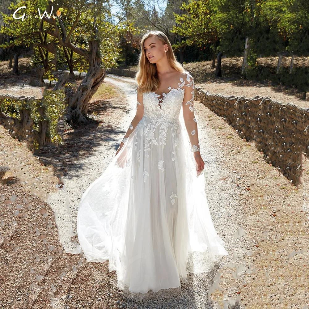 Женское свадебное платье It's yiiya, белое платье трапециевидной формы с длинными рукавами и кружевной аппликацией на лето 2019