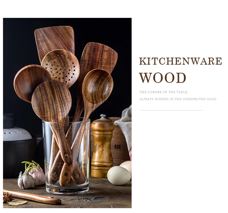 Столовая посуда из натурального дерева, ложка, искусственная кожа, нано шумовка для супа, деревянная кухонная ложка, набор инструментов