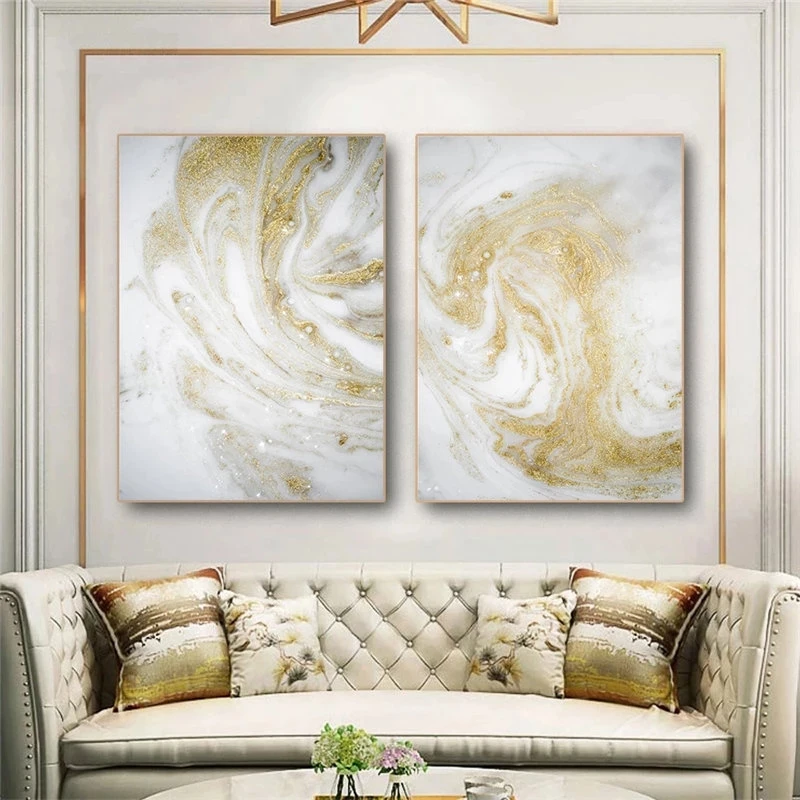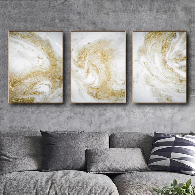 Золотое искусство, Мраморная абстрактная живопись, холст, Постер и ...
