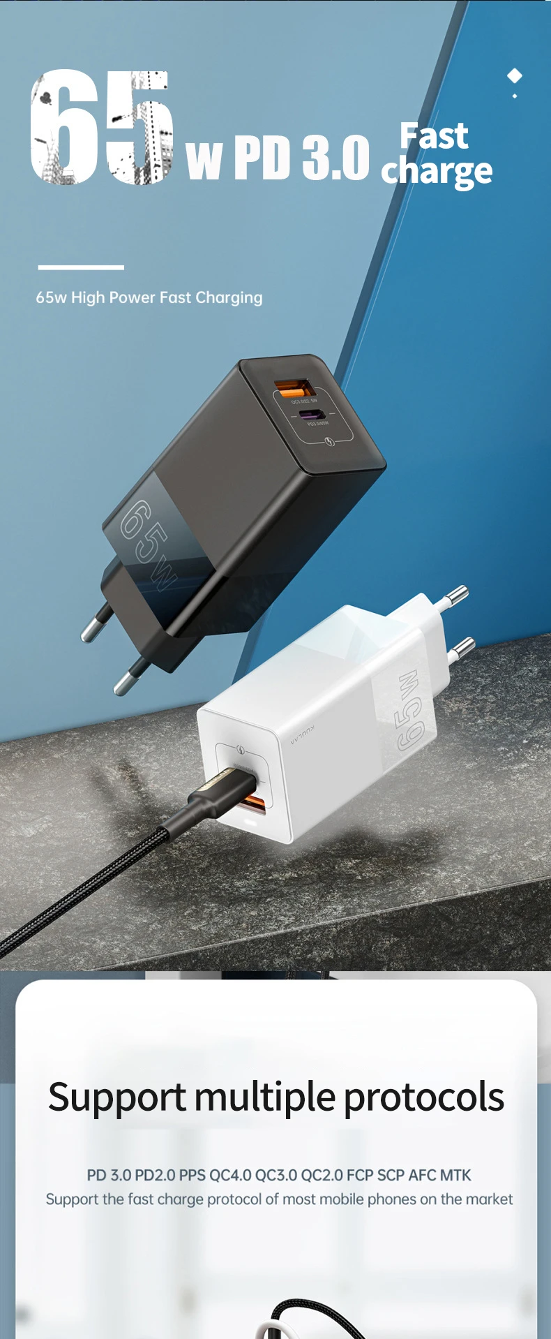 Универсальное зарядное устройство 65 Вт, нитрид галлия, адаптер Gan A + C, подходит для зарядного устройства PD для Apple, смартфона, ноутбука, зарядного устройства для iPhone 11