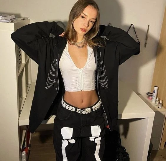 Y2K худи скелет женская одежда на молнии Стразы гранж Харадзюку ове...