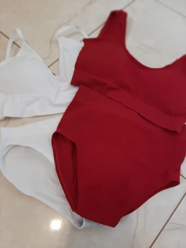 Комплект огонь Сидит прекрасно грудь не плющит. Лямки длинные, поэтому наверное можно было взять не L, а М. Материал очень приятный на ощупь. Мягкий. В остальном я под впечатлением. За 219 рублей - это реально бомба