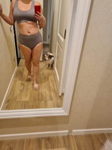 Комплект получила через месяц службой meest . Комплект понравился, мягкий и эластичный, при этом хорошо держит форму. Понравился топ, очень комфортно L сел на объём 90. Топ не ощутим на теле, как на меня шили. Трусы - понравилась высокая посадка, всегда беру только высокую, так ничего не перелавливает и строинит. Если ты чувствуешь себя жирной - попробуй поменяй трусы.