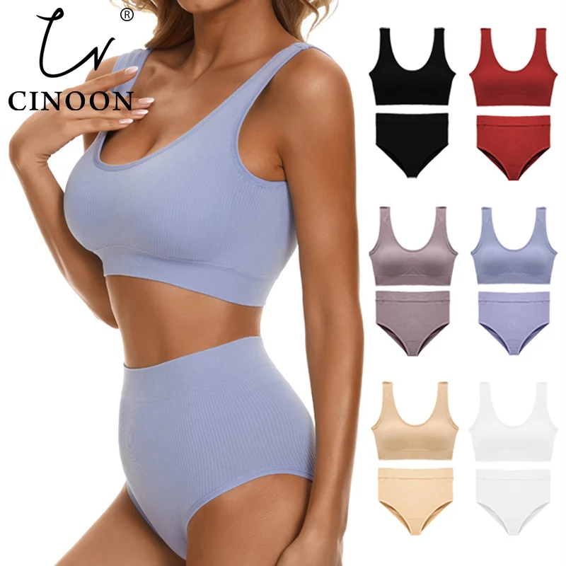 Комплект Бесшовного нижнего белья CINOON, Трусики с высокой талией, женское нижнее белье без косточек, комплект мягких бюстгальтеров с мягкой подкладкой, бюстгальтер без косточек с открытой спиной, нижнее белье